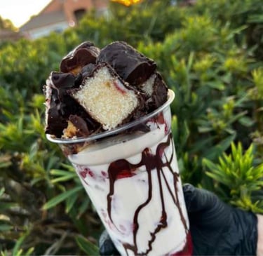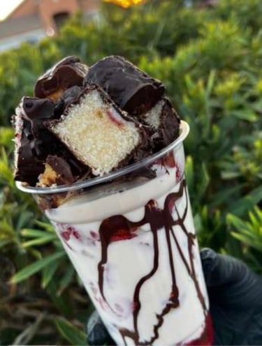 Strawberries, cream, little oats, a little Strawberry jam, cheesecake and chocolate chips
