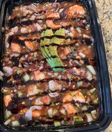 Camarón Aguachile (32oz) Incluyen Chips, Galletas, Mayonesa & Salsa Marisquera