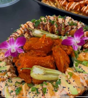 A Tray with 5 Rolls (Not Wings)... You can choose your own rolls from our menu (The price may vary depending on the rolls you choose)